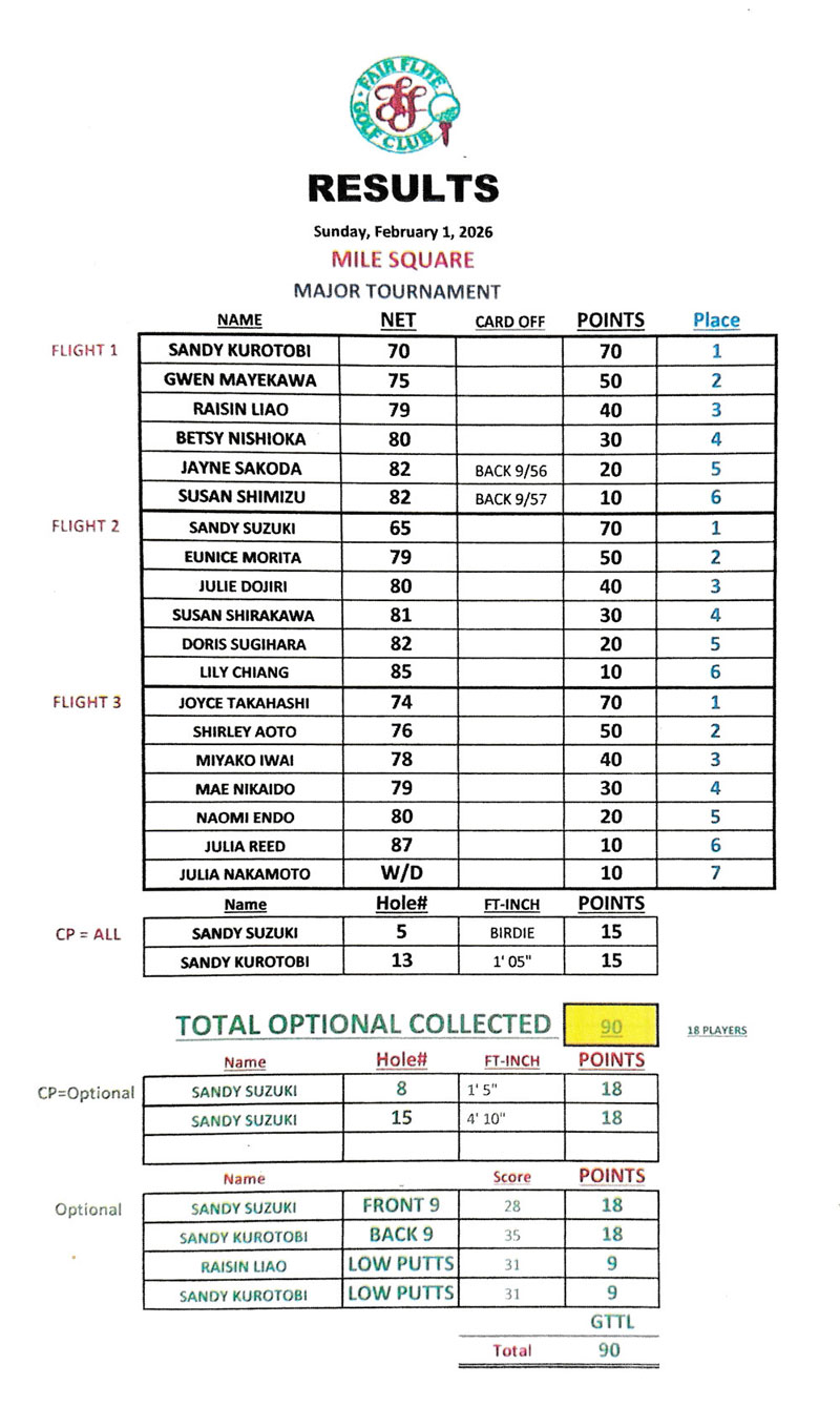 | Course: | Diamond Bar GC- ($90.00) |